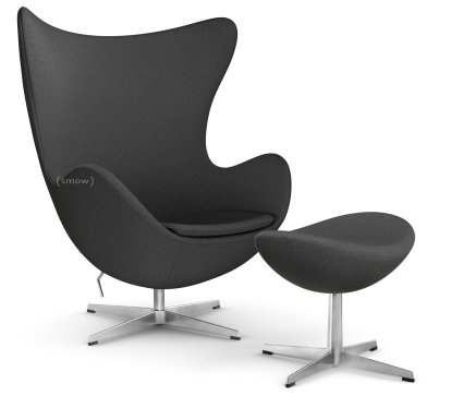 Egg Chair, Christianshavn, Christianshavn 1174 - Dark Grey , Satin polished aluminium, With footstool