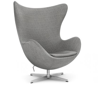 The first prototypes of the Egg Chair as produced today by Fritz Hansen were created by Arne Jacobsen in his garage: the designer experimented with plaster and plastic in the search for a process for the production of sculptural and organic forms. The frame of the chair is made of steel, while the seat is made of fibreglass reinforced polyurethane foam. The cover, which was originally made of leather and is now available in different fabrics, has to be adapted to the furniture with such high precision that only qualified employees are allowed to do the job. Due to the complex manufacturing process, taking into account traditional craftsmanship, only six to seven egg chairs can be produced per week, which emphasizes the unique character of the piece of furniture. For even greater comfort, the original Jacobsen armchair includes a seat cushion. In addition, the Fritz Hansen Egg Chair has an integrated rocking mechanism, by means of which the seat can be tilted. As a certificate of authenticity, a serial number is stamped in the base.