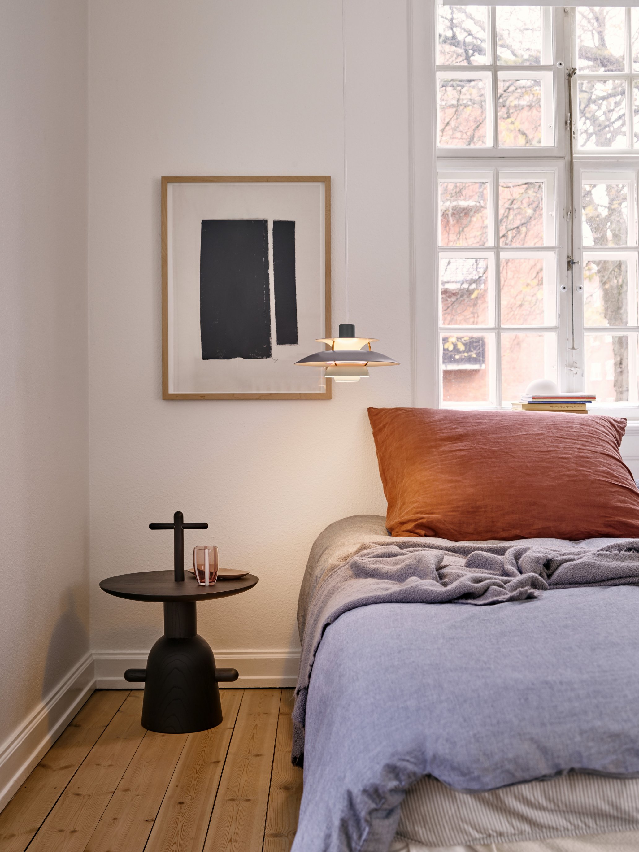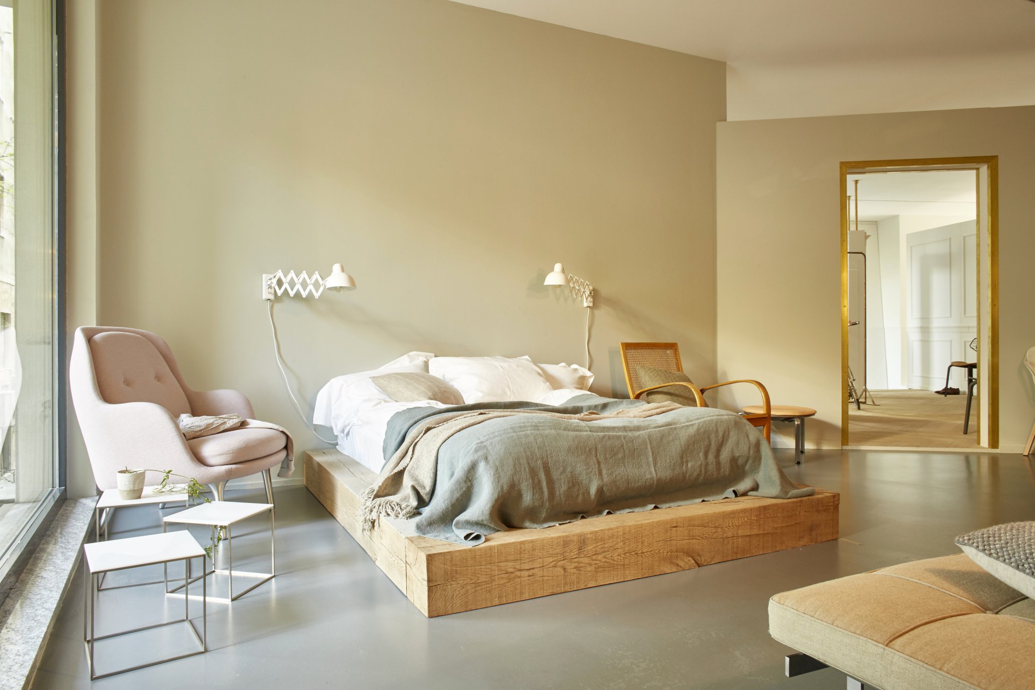 In addition to colours, materials and functional furniture, lighting plays an important role in the bedroom, for all variable lighting: while daylight is preferred in the morning, a subdued lighting mood is appropriate in the evening. Bedside lamps by Louis Poulsen, Hay or Muuto set aesthetic accents and provide enough light for reading, while accessories and home textiles such as blankets, rugs or curtains offer versatile design options and ensure a harmonious, cosy atmosphere.