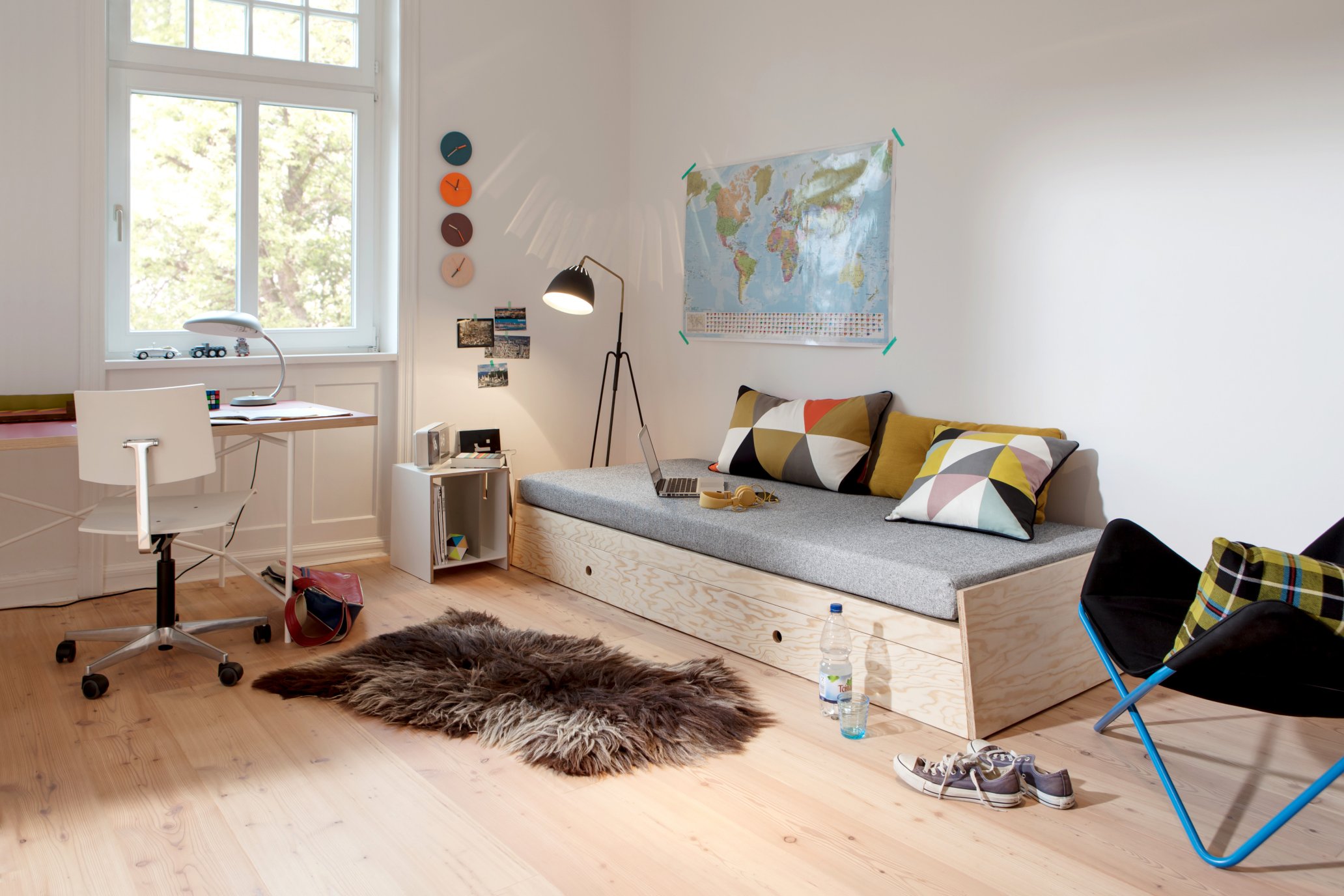When the bedroom and living room are one and the same, Stappeliege foldaway beds can be used as a sofa and bed.