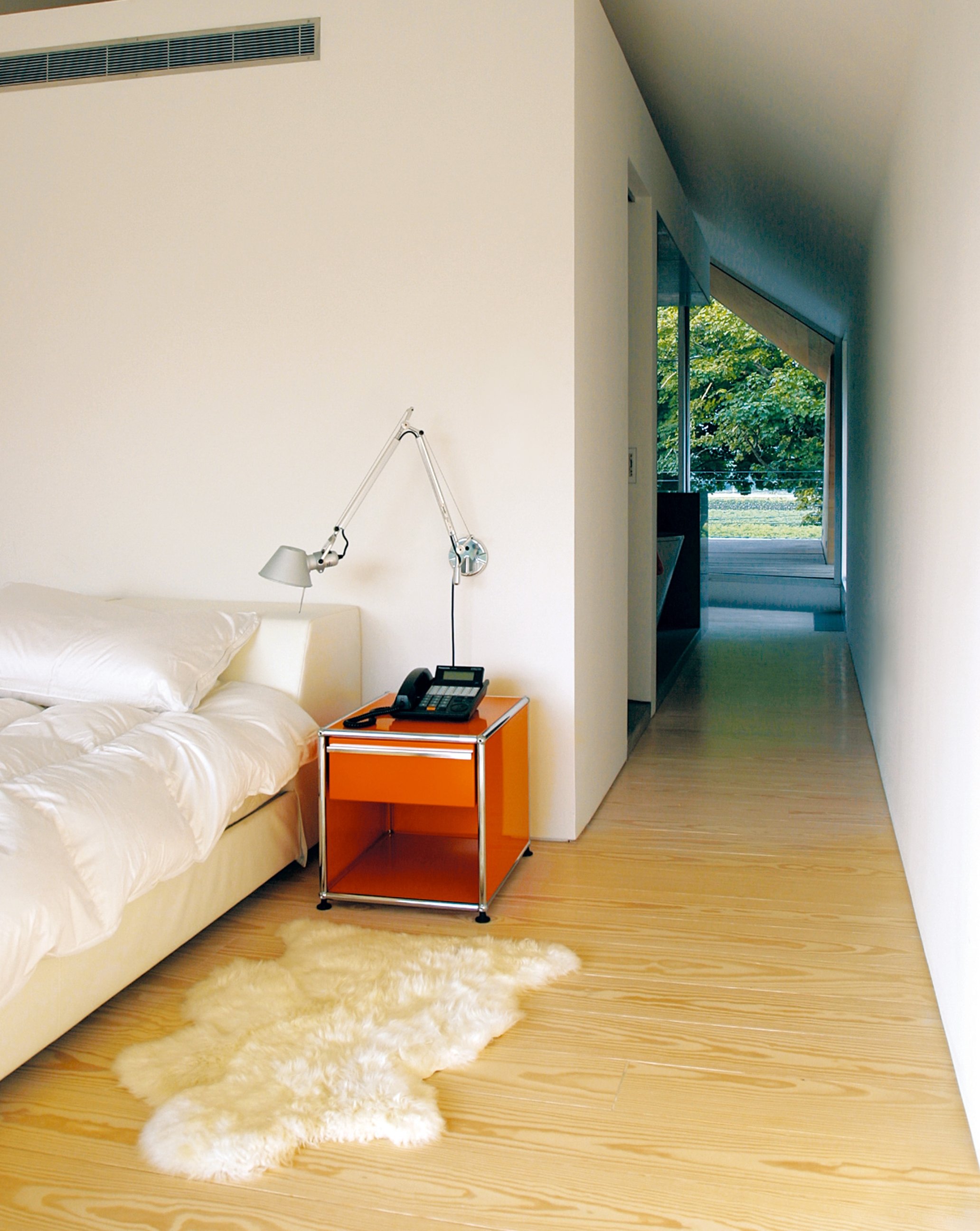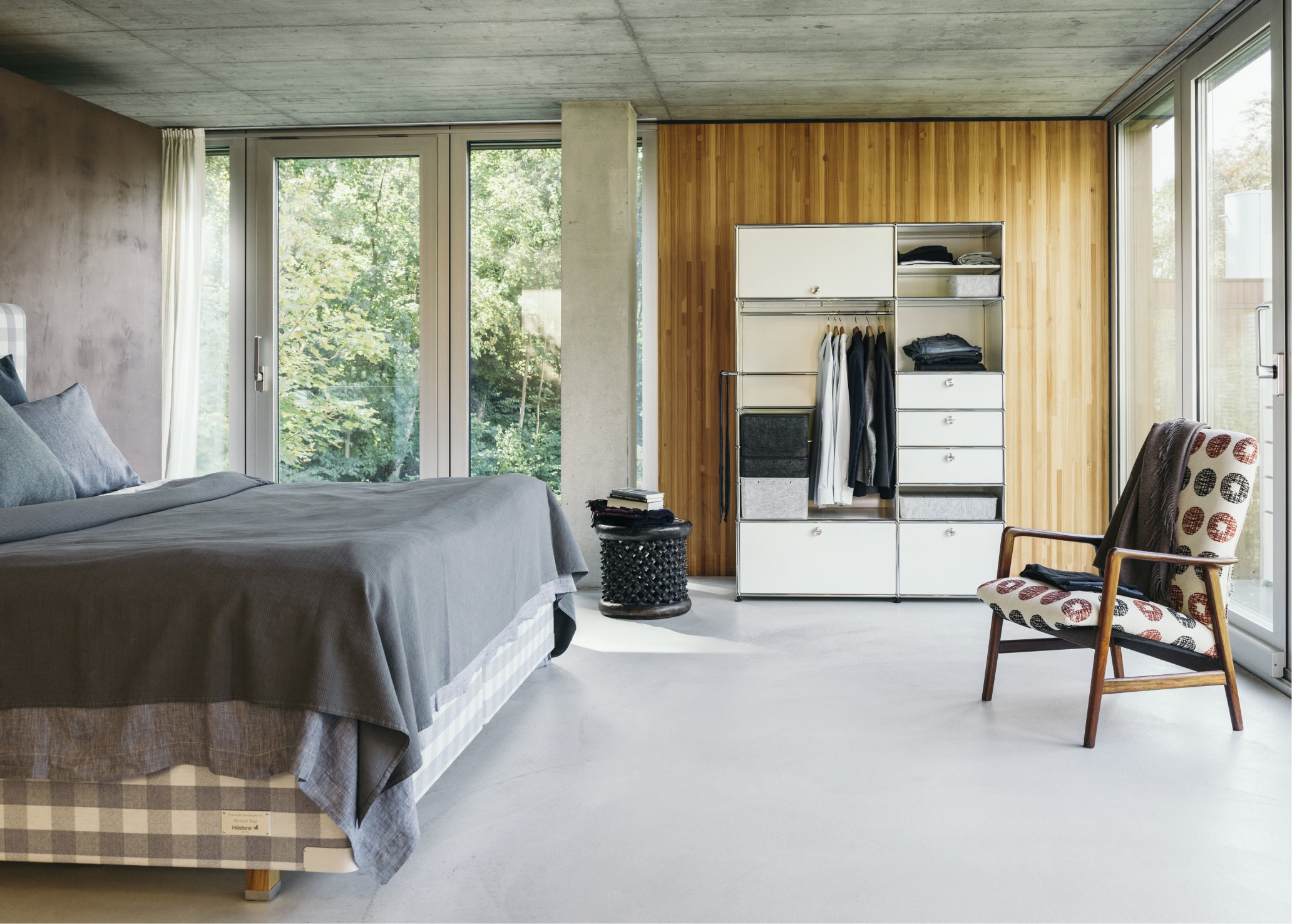 As the bedroom is usually used not only for sleeping, but also for storing clothing, bedding and other belongings, a suitable cabinet or a flexible shelf system is indispensable for clarity and order. To create a sense of calm, simple functional models with closed surfaces are particularly well suited. The Plane Wardrobe by Müller Small Living provides minimalist design for perfect organization and sets special accents with unique details, while the Schrankone cabinet system from Nils Holger Moormann can be tailored to individual requirements. The high-quality Moormann wardrobe is available in various designs and impresses with its simple design and sophisticated construction.