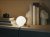 Material | Shade: mouth-blown glass, satin white Suspension: brass, brushed Wall hanger: aluminium, black powder-coated |
