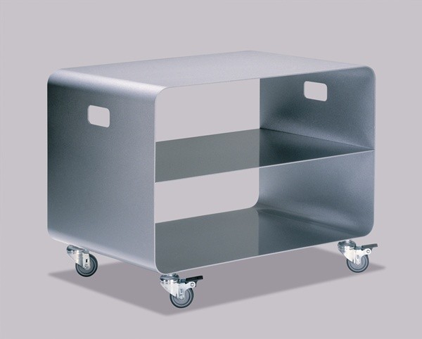 Available in a fantastic range of colours, the mobile range from Müller Möbelfabrikation is produced in Germany from 3mm thick steel plate, come with lockable castors and are sturdy enough to be used a seat. Should the need arise.