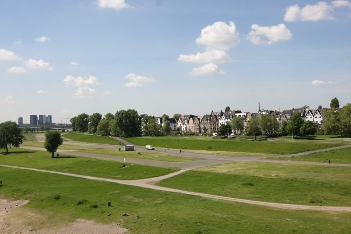Swinging a bow round the Tonhalle concert hall it's over the Oberkasseler Brücke to the left bank of the Rhine and Düsseldorf-Oberkassel. Developed at the turn of the 19th/20th century as a consequence of Düsseldorf's increasing prosperity, and thus ready market for high-value housing for the city's growing middle and professional classes, it's fair to say Oberkassel remains one of Düsseldorf's higher-end suburbs. Largely developed according to a plan inspired by, and approved by, if not directly by, Josef Stübben, one of the era's leading and most progressive urban planners, Oberkassel is characterised by the way the streets, almost poetically, follow the curve of the Rhine; by the meadow next to the river which separates Oberkassel not only from the industry of the river, but Düsseldorf, and in doing so creates an almost rural, pastoral, calm; and perhaps most strikingly by the houses, many of which were built by some of the city's most important architects of the period, including Hermann vom Endt, Oskar Rosendahl and Theodor Balzer.