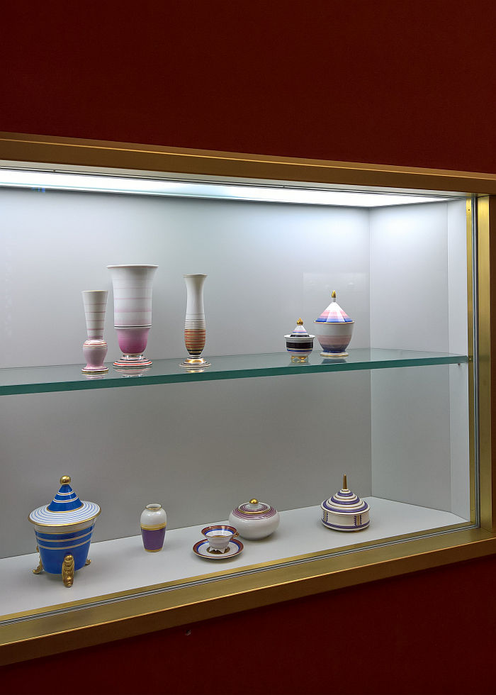 An introduction and invitation narrated and elucidated on the one hand by the variety of differing object types on show, including, for example, mokka cups, storage jars of numerous genres, serving plates or vases, including a few whose self-confident naked female forms remind us that the 1920s were the beginnings of a more sexually, and gender, open and liberated society; and an introduction and invitation narrated and elucidated on the other hand through the variety of approaches to and understandings of decoration on show.