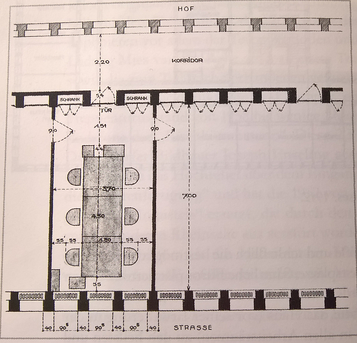 The only slight indulgence was/is to be found in the vestibule, that location where important guests were greeted and which was thus more luxurious, or at least a little; Behrens noting that "here, too, all pomp through rich decoration or architectural ornamentation is intentionally avoided, and a more sophisticated character sought alone through the material".20
