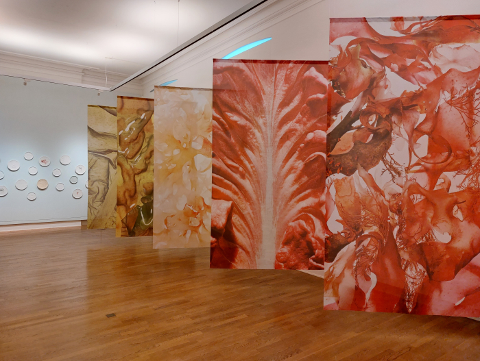 With the project Future-Proof Plating Zürich based, Maastricht born, designer Carolien Niebling argues, in our interpretation of the project, that resolving questions of future food supply necessitates a re-focussing: a re-focussing on how we produce our food, on how we source and supply our food, on what we understand as food, of our relationship with food. A re-focussing undertaken metaphorically in Ask Me if I Believe in the Future via a presentation of large format, close-up photos of algae and edible leaves and by a series of ceramic plates embossed with impressions of algae and edible leaves: the former allowing one to approach questions of how well do we actually know, understand, comprehend our food, where it comes from, how it gets to us, what's it composed of? While the later, and with a touch of almost Art Nouveau-esque linking of object and nature, literally plates up algae and edible leaves in an attractive, aesthetic, appealing manner. A visually appetising presentation which enables, forces, one to consider how tasty and desirable a diet of, ¿self-sufficiently home farmed? algae could be. And how appetising and plentiful and nourishing could food be if we treated it less as a commodity, and more as the basis of human life? All human life.