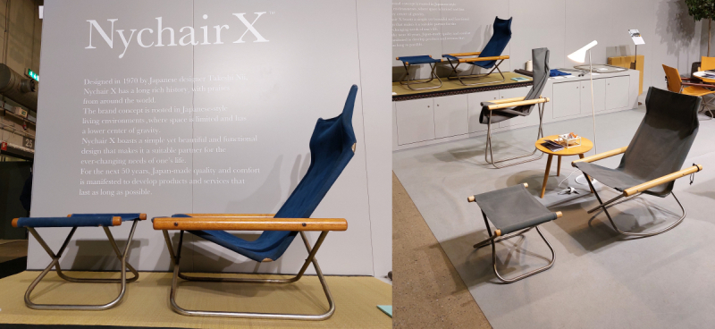 We also like the fact that the "Ny" of Nychair X is phonetically both Takeshi's surname, Nii, and the Danish for new, ny. Which is the sort of joyous wordplay that will always tickle us. If you can thereby read a joint Japanese/Danish heritage in Nychair X, or if you believe that "Ny" was just an amusing connection that arose when trying to name the object, is something we'll leave you all to decide for yourselves; but for our part, viewing Nychair X before we knew about Shimazaki's involvement and about Nii's fascination with 1950s furniture from Denmark, we were definitely seeing a stereotypical 1960s bearded Dane eating their muesli in it, or their curry rice, which confused us greatly, not least because with its low seating height, transience, universality, stability and unassuming self-confidence it can be so easily rooted in the long (hi)story of Japanese interiors. And so, yes, we'd see an argument to be made that without Denmark it would have been a very different curry rice recipe. In which context we'd also throw into the mix Verner Panton's mid-1950s Bachelor Chair, a collapsible construction in metal and sailcloth, which presumably Shimazaki would have aware off, add a couple of Kendō shinai to a Bachelor Chair and you're well on your way to Nychair X. And Panton's Bachelor Chair is very much a contemporary reimagining of Kaare Klint's 1930s collapsible canvas and wood Safari Chair, as arguably is Nychair X, albeit a re-imaging in Japanese, in context of Japan. And with thoughts of the folding director's chair. Additionally we'd throw in Børge Mogensen's 1958 daybed, a work relaunched at Stockholm 2020 by Carl Hansen & Søn as the BM0865 Daybed, a work unquestionably inspired by Japan and Japanese interiors and Japanese sandals, if, and assuming all the dates are right, developed before Makoto Shimazaki arrived in Copenhagen. And we'd throw in Katsuhei Toyoguchi's early 1960s Spoke Chair for Tendo, a low down Japanese Windsor, and while the Windsor chair, concept, framework, didn't originate in Scandinavia it is intimately associated with Scandinavia, not least with post-War Denmark; and a Toyoguchi with whom Nii also appears to have been in close contact. As he also apparently was with Isamu Kenmochi whose woven rattan seating wouldn't look out of place on the helix of design in Denmark. And thus as a work the Nychair X does provide an excellent impetus for, and access to, wider investigations on the post-War Danish-Japanese design dialogue.