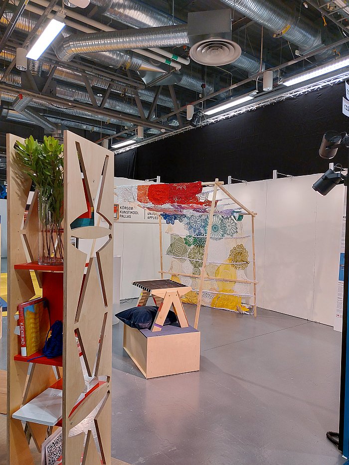 Something that on first glance is very much the case with Linila by Minna Arukaevu, Miina Aleksandra Piho and Liisi Tasso, a shelter, a room-in-room, crafted from spruce, cotton and woollen doilies that is based on a concept by Väino Tamm from the 1960s; a Väino Tamm who, as head of the Interior Design department at the Estonian National Art Institute from 1968 to 1986, was a long-time colleague of Tomberg. But wasn't Bruno Tomberg. A project, a shelter, that while, unless we missed it wasn't represented by an example of Tamm's original plan - which reminds us that neither was Bruno Tomberg's 1959 stool present in its original form, which may have been an interesting addition to the presentation, sadly far too few individuals are aware of the work of Tomberg - and thus without Tamm's proposition it is difficult to comment on the Rethinking Väino Linila represents. Alone one can say that in the use of doilies, of a recycling, upcycling, of expressions of a craft that, for good or bad, are no longer in demand today in context of their intended function, in conjunction with a simple wooden frame, Linila possess a resource footprint as small as its physical, and thus is very much indicative of what designers today should be striving for. While its use of the MultiWeave method allows for discussions on the role of contemporary technology in traditional craft as we, hopefully, approach the middle of the 21st century; allows for discussions on the role of contemporary technology in traditional craft a century after a Bruno Tomberg undertook such considerations.