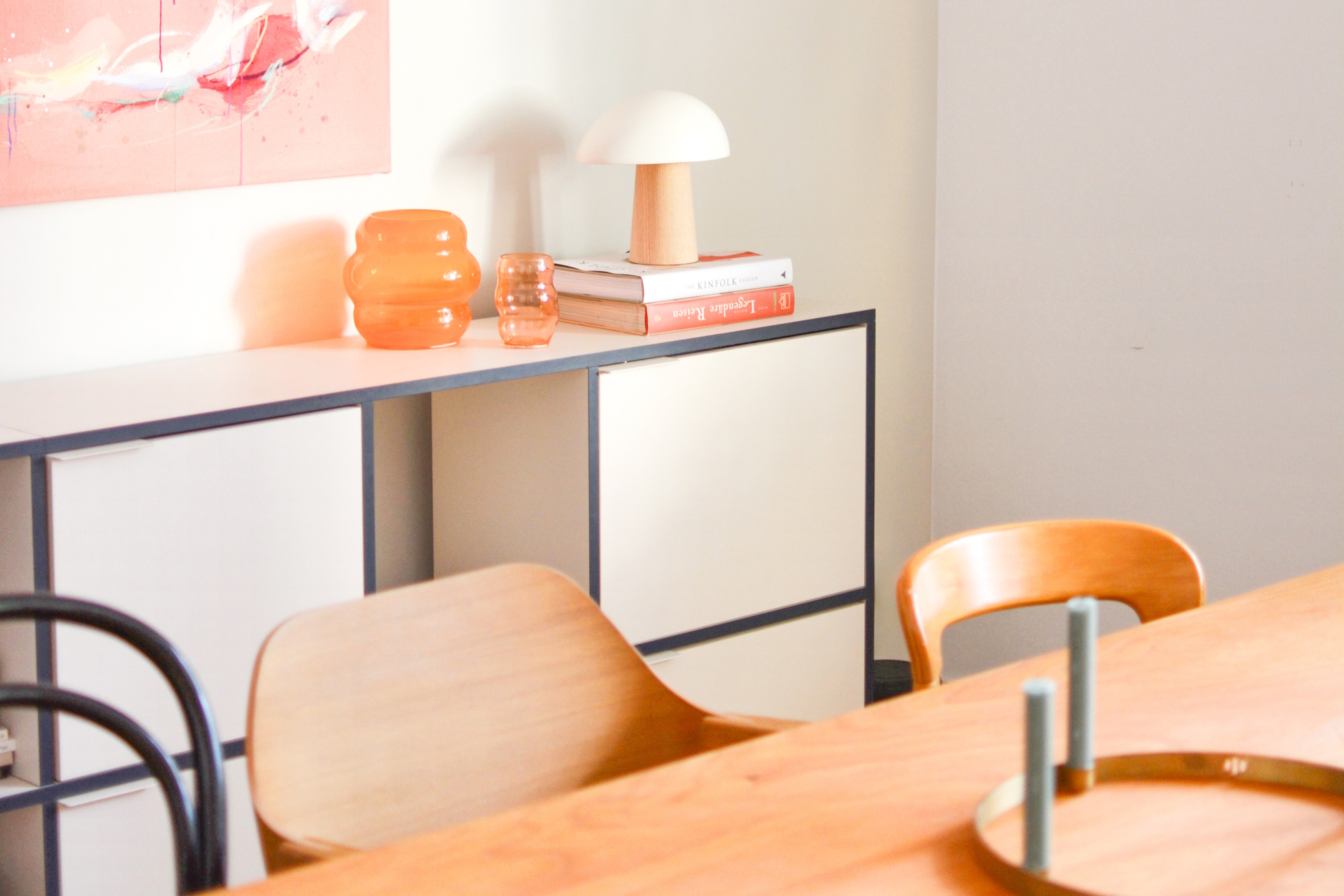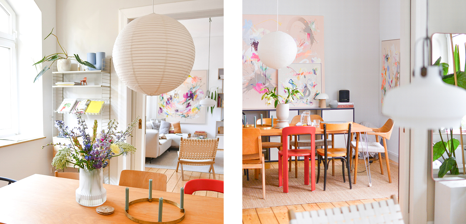 Aylin: I'm generally not a fan of this fast-paced consumer culture. I prefer to save up for individual pieces that will last me a long time and really suit me. I like the mix of special design classics as eye-catchers combined with simple, sometimes even second-hand furniture. A good example is our dining table: the table is homemade, and we have a few designer chairs that have been on our wish list forever, mixed with flea market finds. For me, this makes the room feel lively and authentic. I think slowing down also means choosing things consciously and letting your own style emerge.