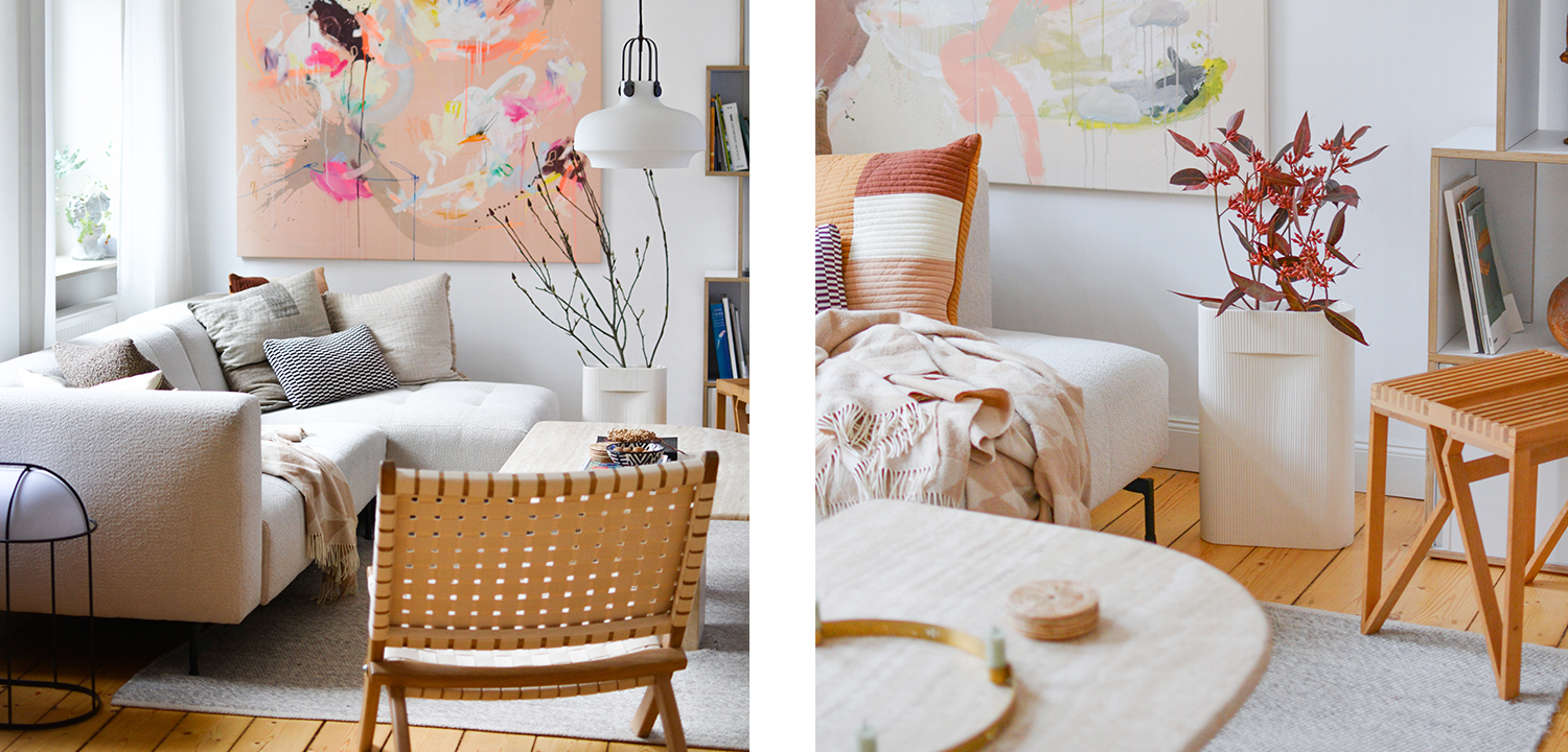 Aylin: For me, interior design and art simply belong together – one inspires the other. During the pandemic, I started painting again, really just because I wanted a beautiful picture that would match the colours of my interior design at the time. This then unexpectedly turned into a real passion and eventually my profession. I now regularly swap out my own works in our home – this immediately brings a breath of fresh air into the room. I often coordinate the décor a little, for example with bouquets of flowers or small colour details that pick up the tone of the current work on the wall. But to be honest, I've also learned that colour always works somehow.