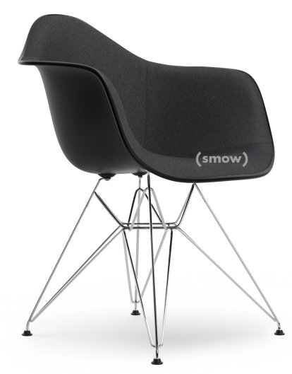 Eames Plastic Armchair RE DAR, Deep black, With full upholstery, Dark grey, Standard version - 43 cm, Chrome-plated