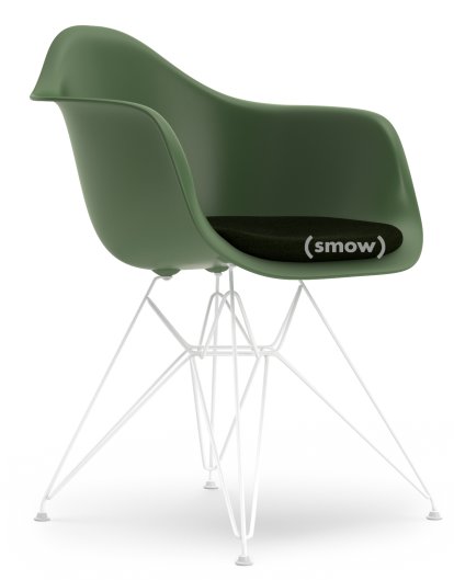 Eames Plastic Armchair RE DAR, Forest, With seat upholstery, Nero / forest, Standard version - 43 cm, Coated white