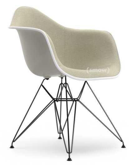Eames Plastic Armchair RE DAR, Pebble, With seat upholstery, Warm grey / ivory, Standard version - 43 cm, Coated basic dark