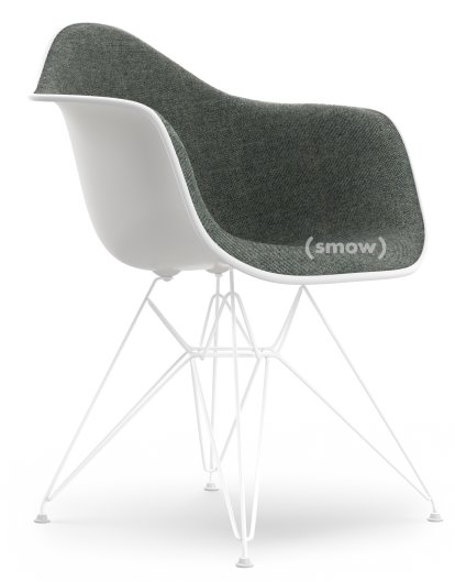 Eames Plastic Armchair RE DAR, White non-RE, With full upholstery, Nero / ivory, Standard version - 43 cm, Coated white