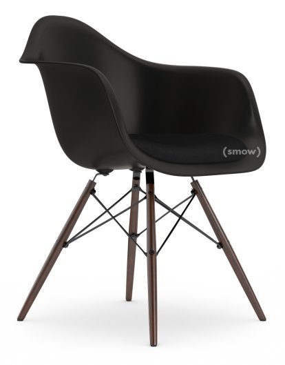 Eames Plastic Armchair RE DAW, Deep black, With seat upholstery, Nero, Standard version - 43 cm, Dark maple
