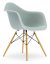 Eames Plastic Armchair DAW Ice grey|With full upholstery|Ice blue / ivory|Standard version - 43 cm|Yellowish maple