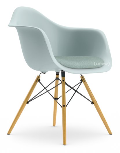 Eames Plastic Armchair RE DAW, Ice grey, With seat upholstery, Ice blue / ivory, Standard version - 43 cm, Yellowish maple