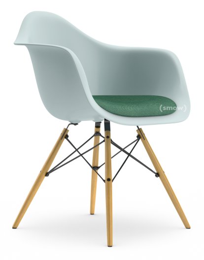 Eames Plastic Armchair DAW, Ice grey, With seat upholstery, Mint / forest, Standard version - 43 cm, Ash honey tone