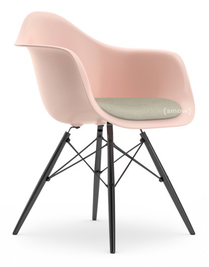 Eames Plastic Armchair RE DAW, Pale rose, With seat upholstery, Warm grey / ivory, Standard version - 43 cm, Black maple