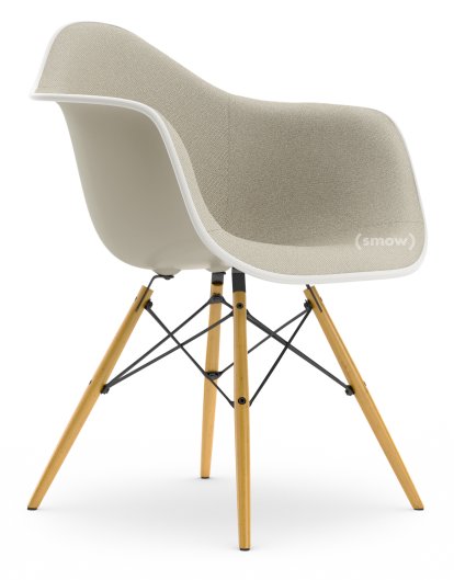 Eames Plastic Armchair RE DAW, Pebble, With full upholstery, Warm grey / ivory, Standard version - 43 cm, Yellowish maple