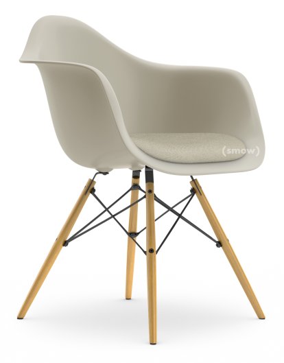 Eames Plastic Armchair RE DAW, Pebble, With seat upholstery, Warm grey / ivory, Standard version - 43 cm, Ash honey tone