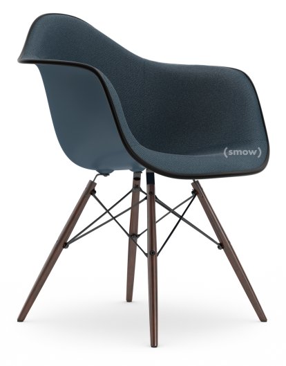 Eames Plastic Armchair RE DAW, Sea blue, With full upholstery, Sea blue / dark grey, Standard version - 43 cm, Dark maple