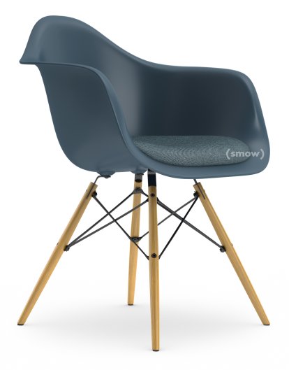 The wooden legs of the Vitra Eames DAW are stained maple. The old reddish stained version was produced until the end of 2008 and is no longer available. Since 2009 the maple wood has been stained yellow. In 2013 Vitra also released dark maple and black maple versions and in 2016 added a honey stained ash version.