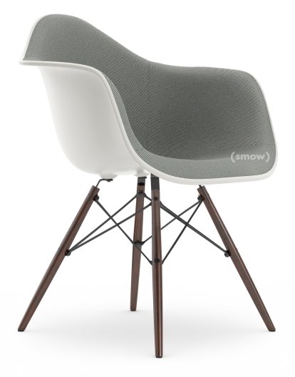 Eames Plastic Armchair RE DAW, White non-RE, With full upholstery, Nero / ivory, Standard version - 43 cm, Dark maple
