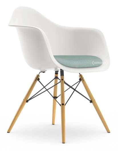 Eames Plastic Armchair RE DAW, White non-RE, With seat upholstery, Ice blue / ivory, Standard version - 43 cm, Ash honey tone