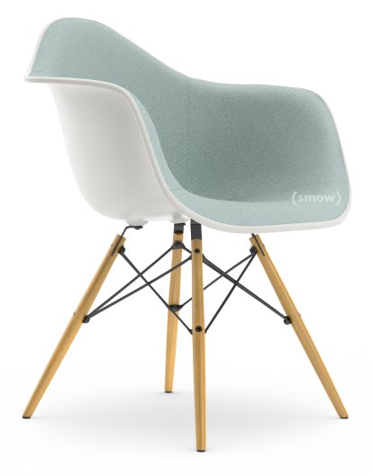 Eames Plastic Armchair RE DAW White non-RE|With full upholstery|Ice blue / ivory|Standard version - 43 cm|Ash honey tone