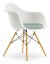 Eames Plastic Armchair DAW, White non-RE, With seat upholstery, Ice blue / ivory, Standard version - 43 cm, Yellowish maple