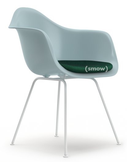 Eames Plastic Armchair RE DAX, Ice grey, With seat upholstery, Mint / forest, Standard version - 43 cm, Coated white