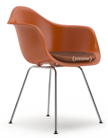 Eames Plastic Armchair RE DAX, Rusty orange, With seat upholstery, Cognac / ivory, Standard version - 43 cm, Chrome-plated
