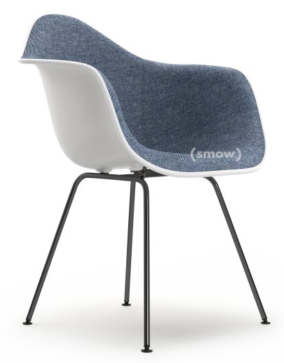 Eames Plastic Armchair RE DAX, White non-RE, With full upholstery, Dark blue / ivory, Standard version - 43 cm, Coated basic dark