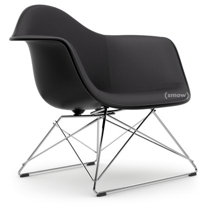 Eames Plastic Armchair RE LAR, Deep black, Full upholstery dark grey, Chrome-plated