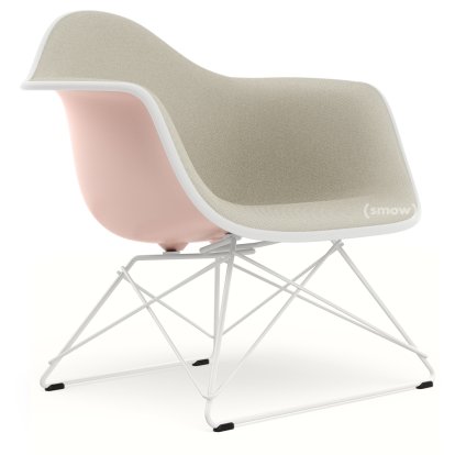 Eames Plastic Armchair RE LAR, Pale rose, Full upholstery warm grey / ivory, Coated white
