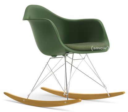 Eames Plastic Armchair RE RAR with Upholstery, Forest, With seat upholstery, Ivory / forest, Without border welting, Chrome/yellowish maple