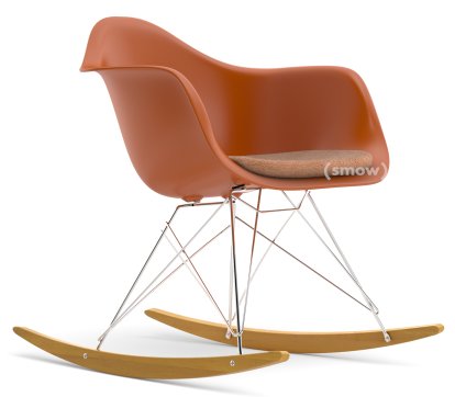 Eames Plastic Armchair RE RAR with Upholstery Rusty orange|With seat upholstery|Cognac / ivory|Without border welting|Chrome/yellowish maple