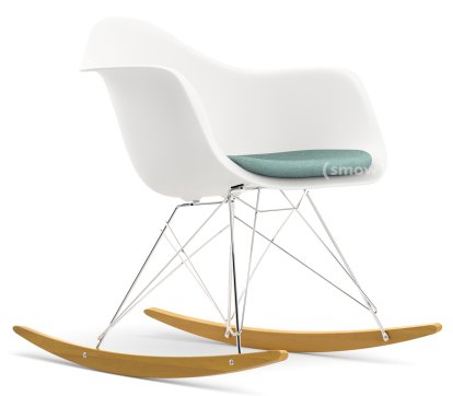 Eames Plastic Armchair RE RAR with Upholstery, White non-RE, With seat upholstery, Ice blue / ivory, Without border welting, Chrome/yellowish maple