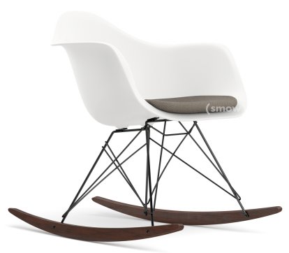 Eames Plastic Armchair RE RAR with Upholstery, White non-RE, With seat upholstery, Warm grey / moor brown, Without border welting, Basic dark/dark maple