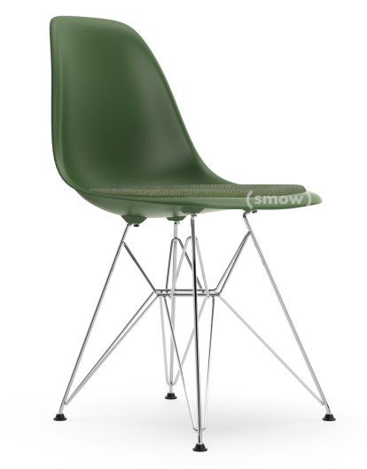 Eames Plastic Side Chair RE DSR Forest|With seat upholstery|Ivory / forest|Standard version - 43 cm|Chrome-plated