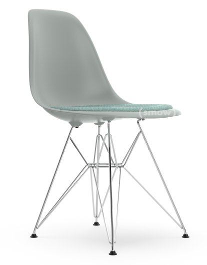 Eames Plastic Side Chair RE DSR, Light grey, With seat upholstery, Ice blue / ivory, Standard version - 43 cm, Chrome-plated