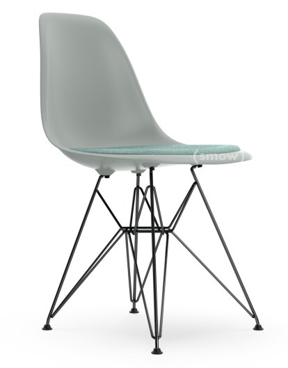Eames Plastic Side Chair RE DSR Light grey|With seat upholstery|Ice blue / ivory|Standard version - 43 cm|Coated basic dark