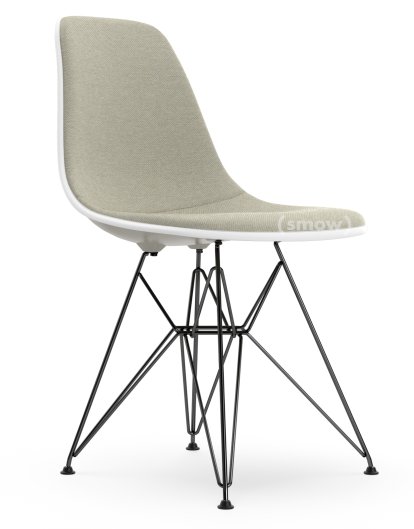 Eames Plastic Side Chair RE DSR, Pebble, With full upholstery, Warm grey / ivory, Standard version - 43 cm, Coated basic dark