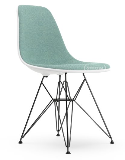 Eames Plastic Side Chair RE DSR White non-RE|With full upholstery|Ice blue / ivory|Standard version - 43 cm|Coated basic dark