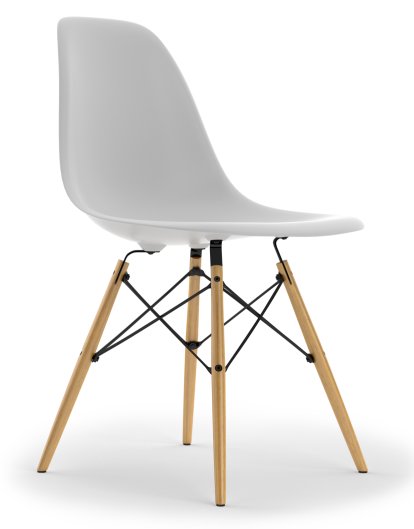 Produced today by Vitra the Eames DSW side chair emerged in 1950 as part of the Eames plastic chair collection for the MoMA Design Competition "International Competition for Low Cost Furniture". With its warm wooden base, the DSW is one of the most popular members of the Eames' chair family, a family whose one-piece plastic seat shells helped revolutionise furniture design. Since 2024 Vitra has manufactured the Eames Plastic Chair seat shells from resource-saving recycled material.