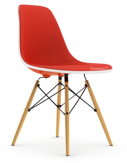 Eames Plastic Side Chair RE DSW Red (poppy red)|With full upholstery|Coral / poppy red |Standard version - 43 cm|Ash honey tone