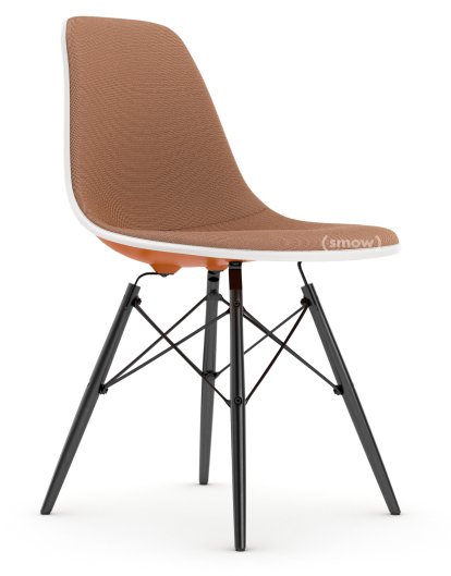 Eames Plastic Side Chair RE DSW, Rusty orange, With full upholstery, Cognac / ivory, Standard version - 43 cm, Black maple