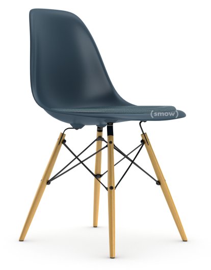 Eames Plastic Side Chair RE DSW, Sea blue, With seat upholstery, Ice blue / moor brown, Standard version - 43 cm, Ash honey tone